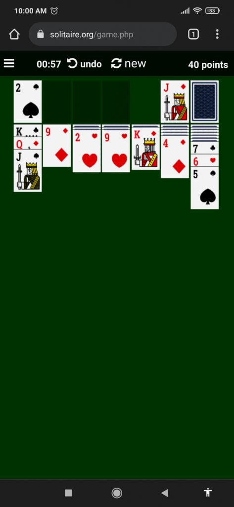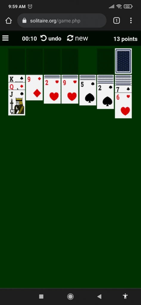 Once you are on the Free Solitaire Card Game the site automatically sets the deal on the table, in case you don’t like the card combinations, you have the option to start the game new to match your own preferences. Once the game starts all you have to do is point, drag, and click, using simple mouse controls.